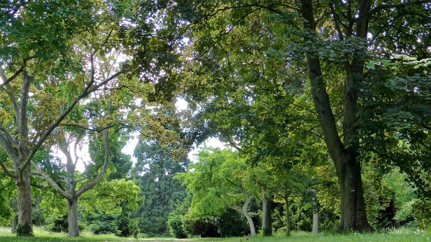 Rápidamente, olvidamos la primera impresión, las rejillas de entrada y el pasillo central rectilíneo, para tomar la tangente, caminar en la pradera verde y pasear de árbol en árbol a lo largo de las 12 hectáreas.