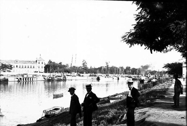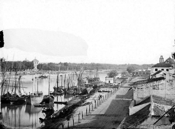 En la siguiente foto del 1886 se observa la calle con gran trasiego de embarcaciones pero sin ningún árbol.