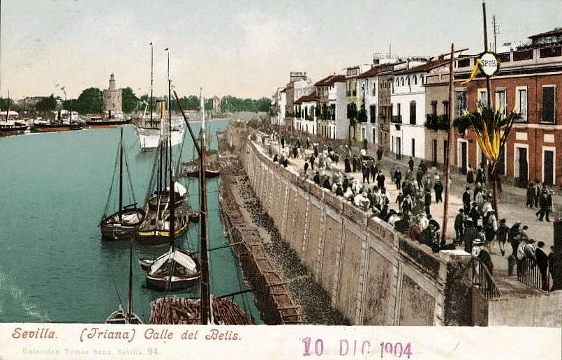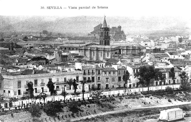 En una postal de Sevilla aparece el Colegio Cristo Rey situado en la calle con algunos arboles en el talud desde la calle al rio ,la Orden de las Hijas de Cristo Rey llegó a la ciudad de Sevilla en el año 1886 y desde entonces esta impartiendo enseñanza en el barrio de Triana. Foto del 1930
