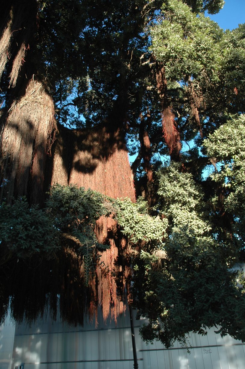 Los especímenes suelen tener varios troncos desde la base, troncos de hasta 2 m de diámetro, ramas extendidas y, a menudo, arqueadas, a veces en círculos sobre el suelo, y / o que llevan «escobas» de raíces adventicias aéreas. Ramitas numerosas, retorcidas y persistentes.
