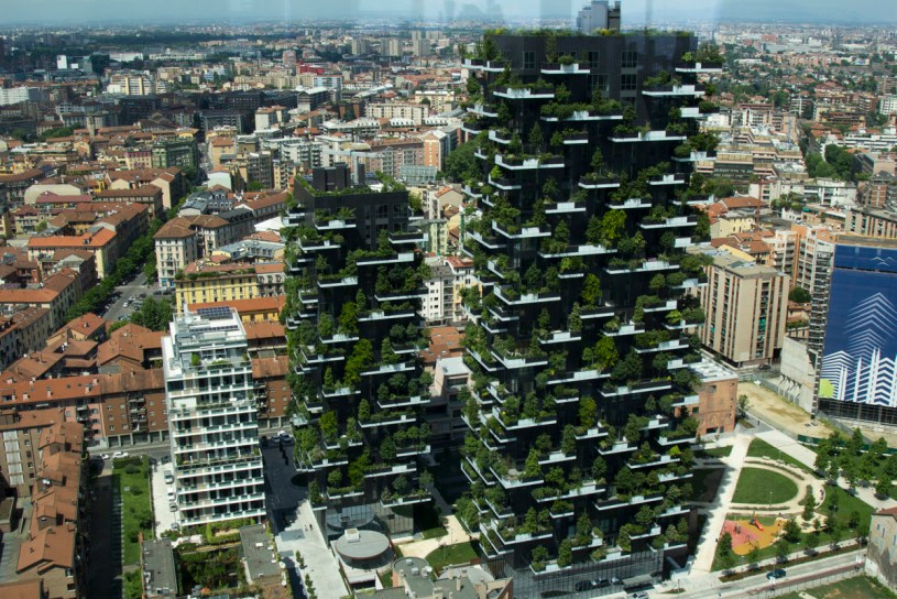 Inaugurado en el 2014 con la peculiaridad de que más 2.000 especies vegetales cubren sus fachadas, un ambicioso proyecto de reforestación urbana que, según sus diseñadores, se propone incrementar la biodiversidad vegetal y animal de la capital lombarda a través la densificación vertical del verde, reduciendo la expansión urbana y contribuyendo también a la mitigación del microclima.