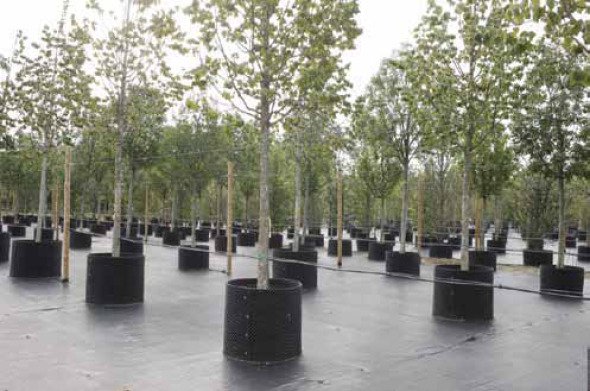 Cada uno de los macetones o jardineras en los que se plantan las especies ha sido diseñado para no influir excesivamente en el crecimiento de las raíces, evitando la aparición de defectos. Las dimensiones varían según las exigencias hídricas y radicales de la planta; en el caso de los árboles, tienen una longitud de 1,10 metros y la misma anchura, mientras que para los arbustos se adoptaron recipientes de 0,50 metros de longitud y profundidad como mínimo.