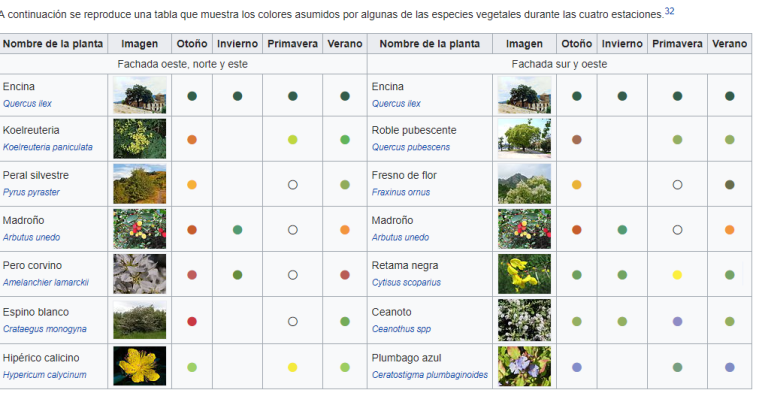 Con el paso de las estaciones, las plantas no solo renuevan sus colores, sino también los de toda la arquitectura: es así como durante la primavera las dos torres asumen delicadas tonalidades pastel, mientras que en otoño, al final de la temporada de crecimiento, emergen los colores cálidos.