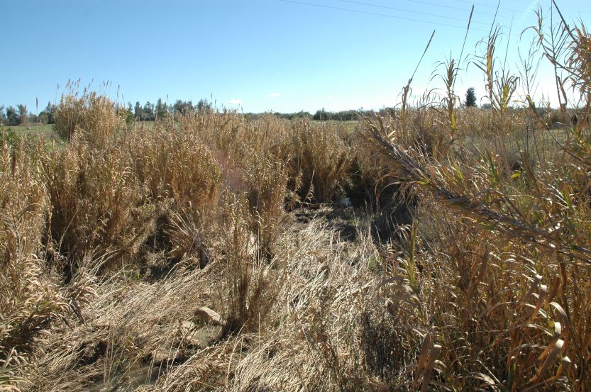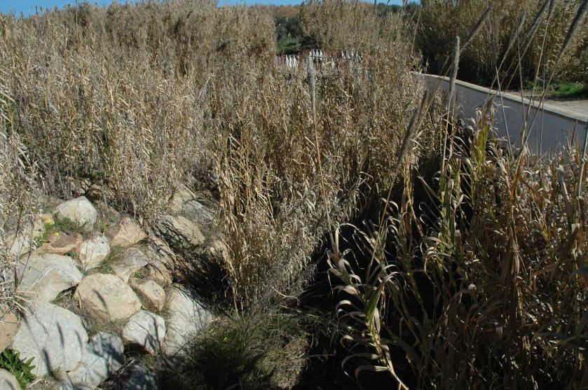 La triste realidad es el aspecto actual que presenta el cauce del arroyo colmatado de plantas invasoras, principalmente Arundo donax.-Caña común y Rubus ulmifolius.-Zarza común y Phragmites australis.-Carrizos, no es que yo entienda de cauces pero a la vista de como se encuentra el del Arroyo Riopudio creo que es un peligro en el caso de fuertes lluvias ya que en algunas zonas está totalmente ocupado por estas plantas, sin que se aprecie la presencia del curso del agua ante tanta maleza.