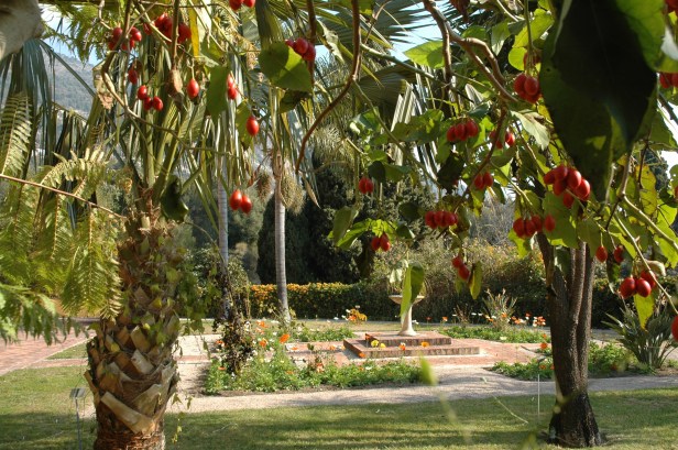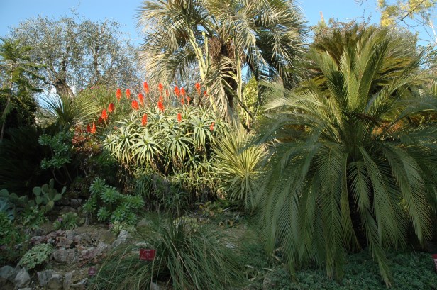 Hay muchas especies conocidas como suculentas (cactus, agave, aloe …), daturas y otras plantas mágicas, olivos cuatricentenarios, palmeras ( Aracéae) y helechos múltiples arborescentes ( Cyatheaceae ). Junto a la colección de cítricos, un huerto contiene especies comestibles de todo el mundo (litchi, guayaba, melón de pera, taro …) y un estanque alberga a Victoria cruziana (un lirio gigante cuyas hojas pueden exceder de 2 metros de diámetro).