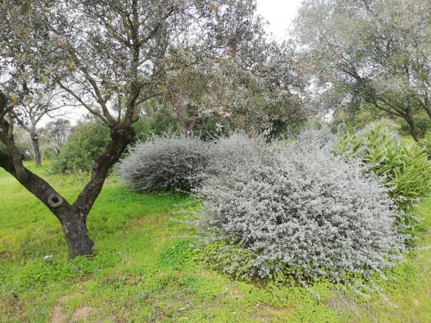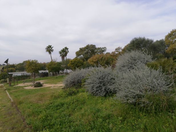 La vegetación arbórea en general se encuentra en buenas condiciones, los árboles en su forma natural llenan el paisaje, algarrobos, encinas ,acebuches, almeces , olmos y hasta una zona de pinar.-Pinus halepensis la mayoría, quizás y para poner algún pego, aun reconociendo que muchas veces se hace lo que se puede , no lo que se debe, me chocaron las tipuanas en el parque, por ser una especie alóctona originaria de Brasil, Argentina, Paraguay, Bolivia y Uruguay y que choca verla en una representación del jardín mediterráneo.