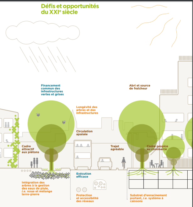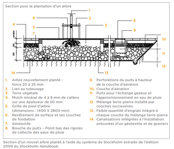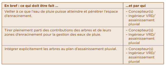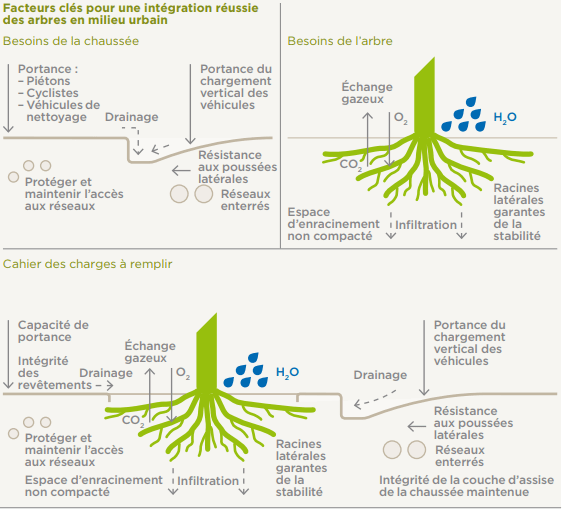 El cambio climático, y especialmente el empeoramiento de las lluvias intensas y los riesgos de inundaciones, también exige repensar la gestión del agua de lluvia para favorecer la reutilización y la infiltración en la mayor medida posible. El objetivo es establecer el estado de los métodos de trabajo, los tipos de parte de planificación, las soluciones técnicas y los criterios de selección de especies que permitan, en este contexto, implementar con éxito el principio del árbol correcto en el lugar correcto. de árboles en zonas urbanas: guía de implementación. Está dirigida a ingenieros de transporte y carreteras, diseñadores de espacios públicos, planificadores, especialistas en árboles y paisajes y todos aquellos involucrados en la gestión y desarrollo de los espacios minerales de nuestra tierra. ciudades.