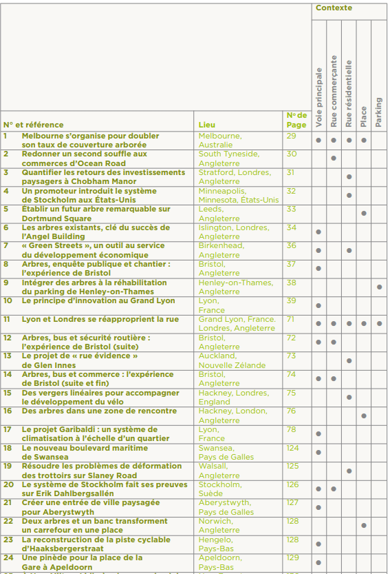 – Nicole Metje, profesora principal, Escuela de Ingeniería Civil, Universidad de Birmingham – Andy Morris, Presidente del Panel de Expertos en Ingeniería Municipal, ICE – Julian A Morris, Servicios Profesionales de Árboles – Frank Moy, Consultor Principal, WRc plc – Christopher Neilan, Director, Landscape and Trees, Consejo del Distrito Forestal de Epping – Daniel Nelson, Gerente de Mejoras del Reino Público, Distrito de Hackney de Londres – Tim O’Hare, Tim O’Hare Associates Ltd – Nick Orman, Consultor Principal, WRc plc – Mark Ostheimer, Director de Operaciones, Nacional Joint Utilities Group – John Parker, Gerente de Arboricultura y Paisajismo, Transport for London – Tim Pharoah, Consultor de Transporte y Planificación Urbana, Living Transport – Steve Proctor, Consultoría de TMS – Ian Philips, Vicepresidente, Instituto de Paisajes * – Ron van Raam, Gerente Director, Permavoid Ltd – Jag Raan, ingeniero de carreteras, Consejo de Walsall – Don Ridgers, consultor independiente en alcantarillado e rehabilitación – Sara Robin, Oficial de Conservación, Yorkshire Wildlife Trust – Christopher Rogers, Profesor de Ingeniería Geotécnica, Universidad de Birmingham – Kenton Rogers, Cofundador, Treeconomics – Adrian Runacres, Secretario y Asesor Técnico, National Winter Service Research Group (NWSRG) – Keith Sacre, Director Comercial, Barcham Trees * – Jeff Saywell, Líder del Equipo de Paisajismo, Ciudad y Consejo del Condado de Swansea – Frédéric Ségur, Gerente de Arboricultura, Autoridad del Gran Lyon – Paul Shaffer, Asociado, CIRIA – Ian Shears, Gerente de la División de Paisajes Urbanos, Ciudad de Melbourne – Henrik Sjöman, Universidad Sueca de Ciencias Agrícolas (SLU) – Jim Smith, Asesor Nacional de Bosques Urbanos, Comisión Forestal de Inglaterra – Örjan Stål, Vegetación e Infraestructura de la ciudad (VIÖS) – Clive Stevens, Foro del Árbol de Bristol – Shaun Taylor, Área Gerente de Carreteras y Tráfico, Ayuntamiento de Bristol – Jake Tibbetts, Presidente, London Tree Asociación de Oficiales – John Thomson, Experto en Ingeniería Municipal, Miembro del Panel, ICE * – Bradley Viljoen, Oficial de Desarrollo de Proyectos, Corporación de la Ciudad de Londres – Joris Voeten, Ingeniero de Espacios Verdes Urbanos, SHFT – Mike Volp, Oficial de Protección de Árboles, Ayuntamiento de Norwich – Marcel Wennink, Ingeniero Principal, Municipio de Hengelo – Jenifer White, Asesor Principal de Paisajismo, Patrimonio Inglés – Alun Williams, Consejero, Consejo del Condado de Ceredigion – Steve Wilson, Director Técnico, The Environmental Protection Group Ltd – Philip Wood, Consultor de Arboricultura, Wood Environmental Consulting Ltd … ainsi que l’ensemble des membres of TDAG, du Urban Design Panel (Comité de Técnicas Relacionadas con el Terrorismo y la Gestión) del CIHT, du Panel de Expertos en Ingeniería Municipal (el Comité de Ingenieros de la Función Territorial) de ICE, y el personal de ICF. * Membresías del comité científico y supervisor de la producción de la versión original de louvrage. Cet ouvrage a été produit par l’équipe suivante: – Gestión de proyectos y recursos financieros: Sue James, TDAG (versión original), Emmanuelle Bougault, VAL’HOR (traducción en francés) – Técnicas de asesoramiento: Martin Gammie, arboriculteur conseil et Mike Morris, Ingenieur de voirie conseil – Comités scientifiques: Voir les noms marqué d’une astérisque [*] (version original). Groupe de relecture (versión francesa): Damien Provendier (Plante & Cité), Frédéric Ségur (Grand Lyon), Emmanuelle Bougault (VAL’HOR) – Recherches, rédaction et traduction: Anne Jaluzot – Misé en page et graphismes: Reducción – Correcciones: Michelle Pauli (versión original), Andrée Jaluzot (traducción francesa) Derechos de autor: Trees and Design Action Group Trust. Publicado en septiembre de 2014 en inglés por Trees and Design Action Group Trust sous le titre: Trees in Hard Landscapes: A Guide for Delivery. ISBN: 978-0-9928686-3-5