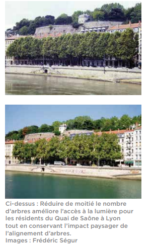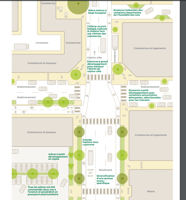 A mediados de los años 90, más del 50% de los árboles a lo largo de las calles y espacios públicos del Gran Lyon eran plátanos. En 2013, esta especie representó solo el 26%, y el número total de especies presentes en los espacios públicos aumentó en un 68%. Más de 250 especies y 70 géneros diferentes están ahora representados. Estos impresionantes avances son el resultado de una estrategia concertada en favor del principio de diversificación. El objetivo de Greater Lyon Tree Charter es que ninguna de las especies de dominio público administradas por Metropolis representa más del 10% del total. Para lograr este objetivo, el servicio de Árboles y Paisajes monitorea la composición de la población de árboles que maneja en la escala de aglomeración. En la escala de cada distrito, se identificó un rango de especies adaptadas al carácter local para que la diversificación de las especies plantadas no interfiera con el mantenimiento de las identidades.