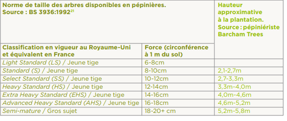 necesitan, mientras que los pequeños árboles en flor crean un espacio acogedor para caminar y jugar en la acera de enfrente. Foto: Anne JaluzotEs esencial visitar al vivero (s) que proporciona las plantas para discutir los métodos de trabajo utilizados y participar en la selección y el etiquetado de los árboles comprados. Para obtener información adicional sobre todos estos criterios, el Anexo D1 de la norma británica BS 8545: 2014 es una referencia útil. En el Reino Unido, los principios establecidos en el Capítulo 8 de la misma norma deben respetarse en su totalidad.