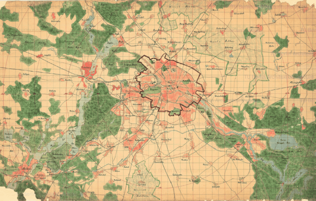La primera planificación general para el Gran Berlín se realizó en 1910 en el marco del Concurso para el Gran Berlín. El desarrollo de los espacios libres tenía una importancia decisiva. El premiado «Jansen-Plan» no sólo aportaba propuestas de edificación sino también un plan detallado sobre los espacios libres. Un pequeño anillo interior y un gran anillo exterior con bosques, parques, jardines y prados debían marcar la estructura de Berlín. Se proyectaron pasillos verdes radiales entre los dos anillos y en el densamente urbanizado casco urbano. Este plan influyó en gran medida en el desarrollo urbano de la ciudad. Siguiendo sus bases se puso en marcha una consolidación ofensiva del suelo. Se compraron a gran escala bienes urbanos y bosques permanentes también en los alrededores de Berlín, y además, se construyeron numerosos parques públicos y pequeños jardines.
