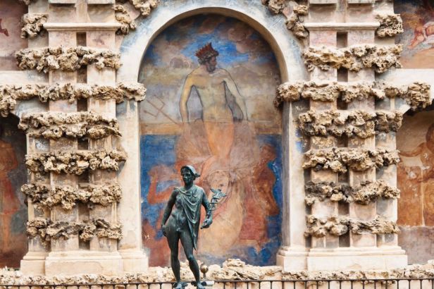 En todo el jardín estaban representadas un cortejo de sátiros, ninfas, dioses y guerreros que lo poblaban.