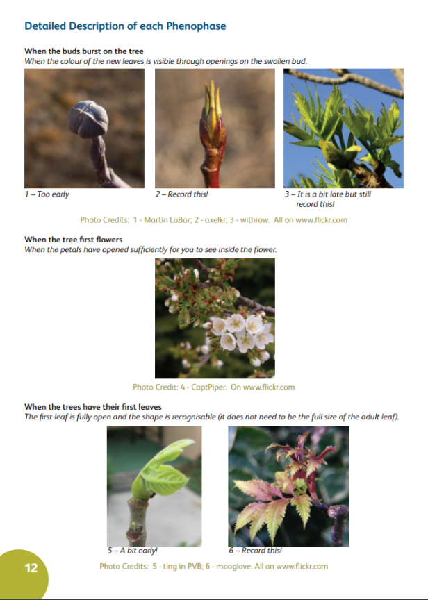 Al determinar las fechas de las diferentes fenofases, puede obtener consejos de la guía de fotos (PDF).