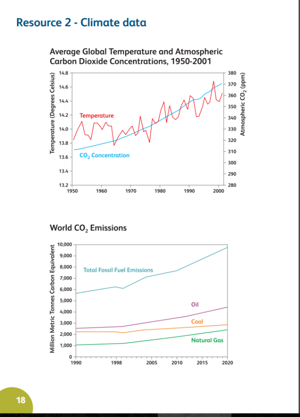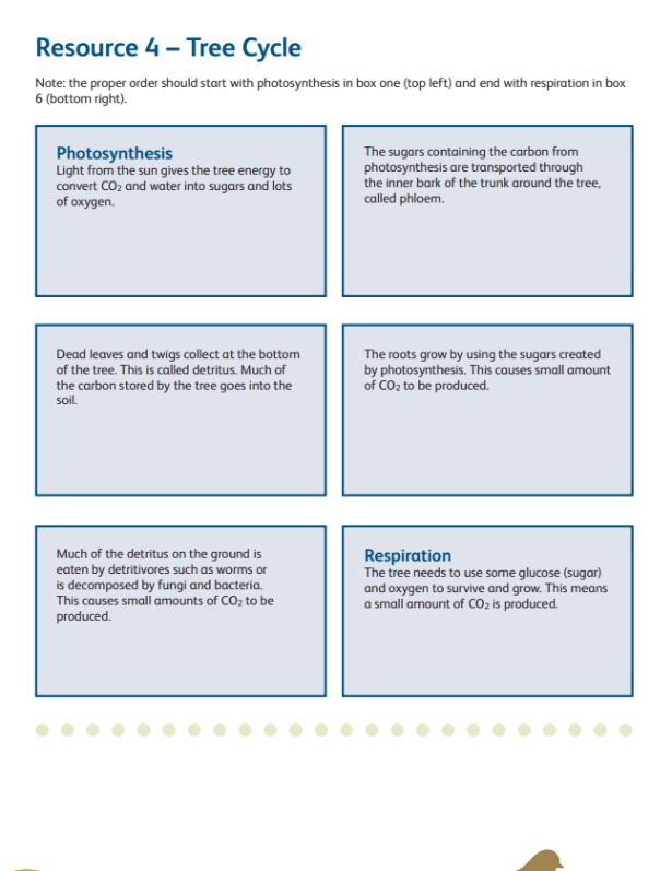 En el contexto del cambio climático, los árboles a veces se ven como una posible solución. Los estudiantes pueden usar artículos de noticias e información en línea para ver cómo diferentes organizaciones utilizan los árboles para combatir el cambio climático y convertirse en «carbono neutral».