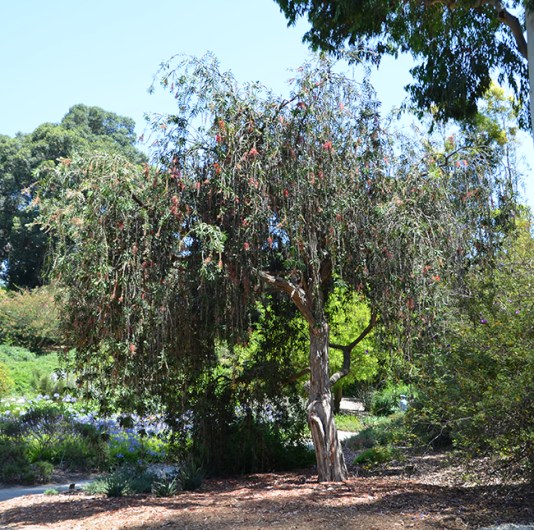 Riegue los árboles jóvenes semanalmente en ausencia de lluvia, aplicando el agua lentamente para saturar el suelo lo más profundamente posible. Una capa de mantillo sobre la zona de la raíz reducirá la evaporación del agua y ayudará a prevenir las malas hierbas. Use una capa de 15 cms. de madera dura o corteza triturada o una capa de12 a 15 cms de mantillo ligero como paja de pino, heno u hojas trituradas como acolchado.. Fertilícelos por primera vez en su segunda primavera. Una capa de 6 cms. de compost sobre la zona de la raíz es un excelente fertilizante para la planta. Retire el mantillo antes de extender el compost. Si prefiere usar un fertilizante químico, siga las instrucciones en la etiqueta. La poda de la planta de Callistemon es mínima. Puedes cultivarlo como un arbusto con varios troncos o podarlo de nuevo en un solo tronco para hacerlo crecer como un pequeño árbol. Si lo cultiva como un árbol, es posible que las ramas inferiores caídas tengan que recortarse para permitir el tránsito de peatones y el mantenimiento del césped. La planta produce retoños que deben eliminarse lo antes posible.