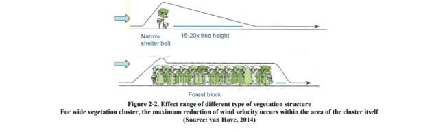 Un estudio de la ciudad de Tainan, Taiwán, mostró que tanto los pavimentos de color oscuro como las superficies impermeables contribuyen a un aumento de la temperatura ambiente dentro del límite de 100 m, mientras que un aumento del 10% en la superficie con vegetación redujo la temperatura en 0.14–0.32 ° C (Kuo , 2000; como se menciona en Chang, 2007)