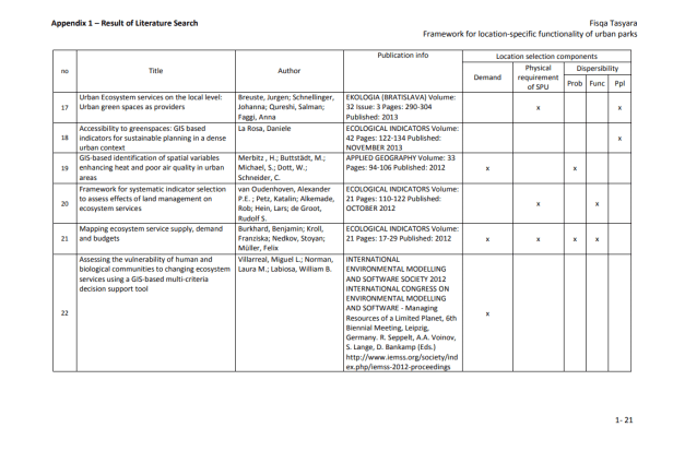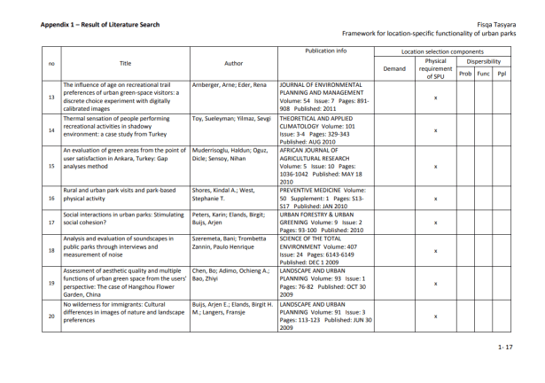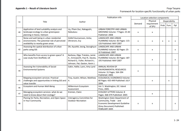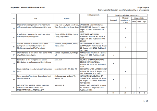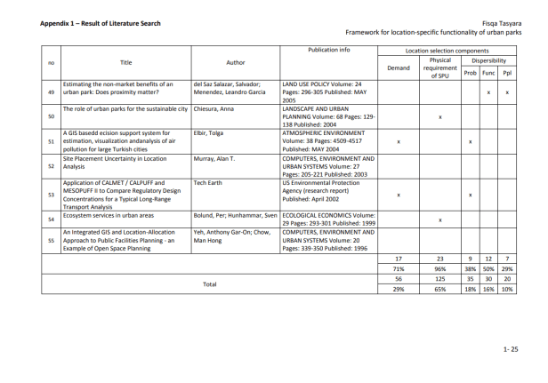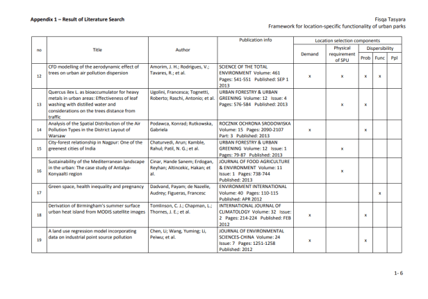 Marco para la funcionalidad específica de la ubicación de los parques urbanos más cerca de las áreas rurales que los centros urbanos problemáticos. Muchos tomadores de decisiones pasaron por alto el potencial de los parques urbanos que se encuentran dispersos dentro del núcleo de la ciudad. Los investigadores han desarrollado y usado muchos métodos en el manejo de problemas urbanos y en la planificación de ubicaciones para instalaciones urbanas (Rakas, et al., 2004; Teixeira y Antunes, 2008; Yang et al., 2007).