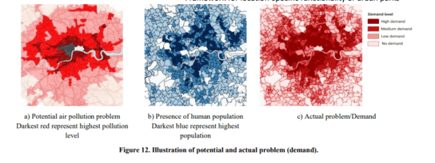 Muchos responsables de la toma de decisiones urbanas siguen creyendo que cualquier aumento de áreas verdes proporcionaría beneficios en toda la ciudad. Tal comprensión conduce a la provisión de espacios verdes abiertos sin considerar la proximidad a la demanda (población y / o puntos críticos de problemas de los ecosistemas). Comúnmente, los estándares de planificación solo especifican la cantidad de área requerida y rara vez especifican dónde deben ubicarse las instalaciones públicas (Yeh y Chow, 1996). Lo que sucede es que los espacios verdes abiertos en áreas urbanas (generalmente desarrollados como bosques urbanos) se desarrollan en los espacios sobrantes o en los terrenos periféricos que están emplazados.