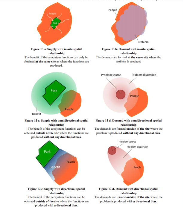 Estos modelos permiten el uso de los datos GIS correspondientes para producir mapas de provisión y uso de los servicios del ecosistema. Los modelos de flujo espacial se utilizan para identificar las fortalezas de los flujos de servicios de los ecosistemas que proporcionan beneficios de los ecosistemas a las personas.
