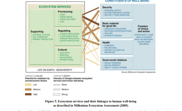 Figura 5. Servicios de los ecosistemas y sus vínculos con el bienestar humano como se describe en la Evaluación del ecosistema del milenio (2005)