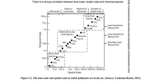 Dispersión de gases y partículas. El modelo soporta partículas (incluyendo sedimentación y deposición en hojas y superficies), gases inertes y gases reactivos del ciclo de reacción NO-NO2-Ozono.