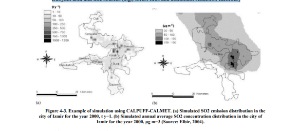 CALPUFF es un modelo que puede analizar la eliminación de contaminantes mediante procesos de deposición húmeda y seca, y la transformación de contaminantes mediante reacciones químicas. El modelo está programado para simular bocanadas continuas de contaminantes que se emiten desde una fuente al flujo del viento ambiental. A medida que el flujo de viento cambia de hora en hora, la trayectoria de cada bocanada cambia a la nueva dirección del flujo de viento. CALPUFF-CALMET es adecuado para: – Impactos de campo cercano en situaciones complejas de flujo o dispersión o terreno complejo o estancamiento, inversión, recirculación y condiciones de fumigación o transporte por encima del agua y condiciones costeras o velocidad del viento ligero y condiciones del viento en calma – Criterios de modelado de contaminantes, incluida la aplicación al desarrollo del Plan de Implementación Estatal (SIP) – Formación de contaminantes secundarios y modelado de materia particulada – Fuentes de líneas y líneas boyantes (por ejemplo, incendios forestales y aluminio) instalaciones de reducción)
