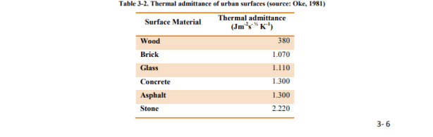 - alta capacidad calorífica de las superficies urbanas (Oke, 1995 y Ca et al., 1998) (Chang, et al., 2007).