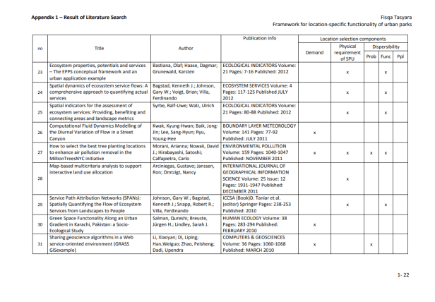 Marco para la funcionalidad específica de la ubicación de los parques urbanos más cerca de las áreas rurales que los centros urbanos problemáticos. Muchos tomadores de decisiones pasaron por alto el potencial de los parques urbanos que se encuentran dispersos dentro del núcleo de la ciudad. Los investigadores han desarrollado y usado muchos métodos en el manejo de problemas urbanos y en la planificación de ubicaciones para instalaciones urbanas (Rakas, et al., 2004; Teixeira y Antunes, 2008; Yang et al., 2007).