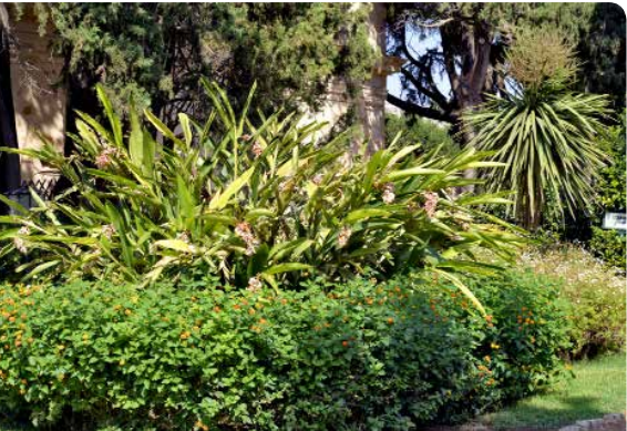 . La Quisqualis indica, una excéntrica planta trepadora tropical en el parterre no debe ser «… es un jardín de rara elegancia, majestuoso, lleno de luces y sombras, lleno de vegetación y misterio, con sus pendientes, los escondites y los hermosos senderos. largos caminos llenos de flores; donde durante las tardes tranquilas las niñeras traen sus cargas para jugar y se divierten participando en miles de juegos; Donde las bandas musicales dan conciertos; donde también se celebran festivales nocturnos, conciertos, loterías, exposiciones; mi carruaje pasó y el ‘Giardino Inglese’ apareció como un campo misterioso, un jardín pagano habitado por estatuas mitológicas; y en esta última gloria celestial, esta rica profusión de vegetación se propagó de una manera extraña, llena de profundas sombras ”. Adriana de Saint-Louis, en La Sicile Illustrée, 1904 pasó por alto.
