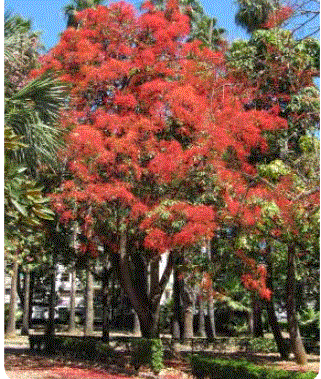 Otras «encantadoras avenidas arboladas … formadas por árboles verdes» conectaron la ciudad con su campo. Entre las primeras avenidas, atestiguadas por mapas y en las páginas de historiadores y cronistas, se encontraban las de 1601, que consistían en álamos a lo largo del camino a San Francesco. di Paola, (hoy en día Via Pignatelli), que junto con plátanos y olmos, también se alinean en las carreteras que luego se convertirán en Via Pindemonte y Via Lincoln. A lo largo del siglo XIX se realizan algunas de las plantaciones de avenidas más importantes: una línea doble de unos 600 plátanos para Via Libertà, plantada en 1892 y árboles de Coral [o Flame] a principios del siglo XIX (1817). A lo largo de la explanada marina. Los primeros prestan un esplendor europeo a la carretera principal de la ciudad, mientras que los últimos, de origen sudafricano, son exóticamente hermosos cuando sus magníficas flores de coral rojo florecen en primavera y ofrecen una sombra refrescante en los meses de verano. Son parte de la familia de la Erythrina caffra, su bibliografía de nombre reconocido, que significa algo así como ‘un color rojo sorprendente’, a pesar de que en Palermo fueron nombrados por Agostino Todaro, director del Jardín Botánico, Erythrina viarum. Parecería que un dosel denso y un abundante floración son suficientes para promover una flor del bosque africano en las explanadas de Europa.
