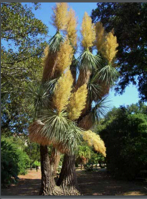 En esta parte del jardín también hay un montículo dedicado a las suculentas y xerófitas en las que están presentes algunos ejemplares de Yucca (incluyendo la relativamente rara Yucca baccata), como Opuntia, Nolina, Aloe, Agave y Dracaena, junto a un bosque sobresaliente. De Pino De Nueva Caledonia (Araucaria columnaris). También hay Phyllostachys nigra, un espléndido tipo de bambú con cañas negras oscuras [culms], muy apreciado por el Conde Lucio Tasca, el propietario actual; un antiguo y raro cachemer cupressus; pero también el Cocculus laurifolius, el Brachychiton acerifolius y el Erythrina caffra junto con las antiguas líneas perimetrales de encina (Quercus ilex), todas ellas antiguas, sanas y florecientes.