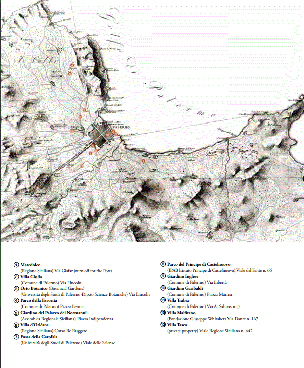 Guía de los jardines públicos de Palermo. Curada por Rosanna Pirajno, Arturo Flaibani. Palermo: Salvare Palermo Foundation, 2015.