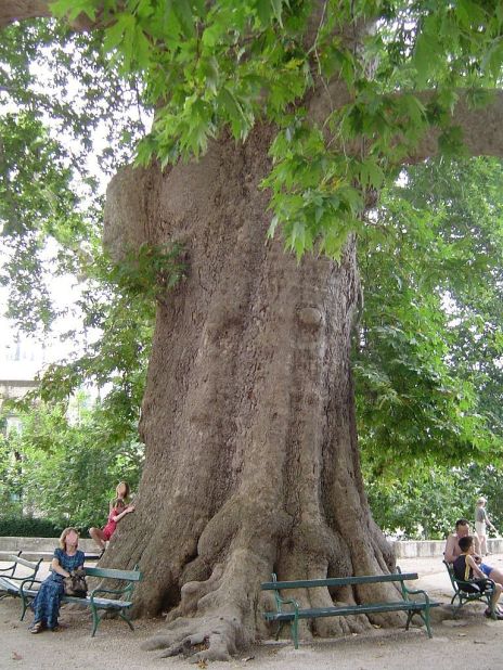 Según relata Jeroen Philippona en la web http://www.monumentraltrees.com, este mismo ejemplar mide actualmente 42 metros, según un estudio con cinta métrica, pero antes de una poda que se realizó para retirar unas ramas peligrosas alcanzaba los 48. Teniendo en cuenta que su perímetro de tronco es de 10,75 metros, se trata posiblemente del árbol con más volumen de madera en toda Europa, con unos 160 metros cúbicos, aproximadamente. El segundo plátano es también imponente: mide 33 metros de altura, sensiblemente menos, pero alcanza un perímetro de 11,39, todavía más grueso»