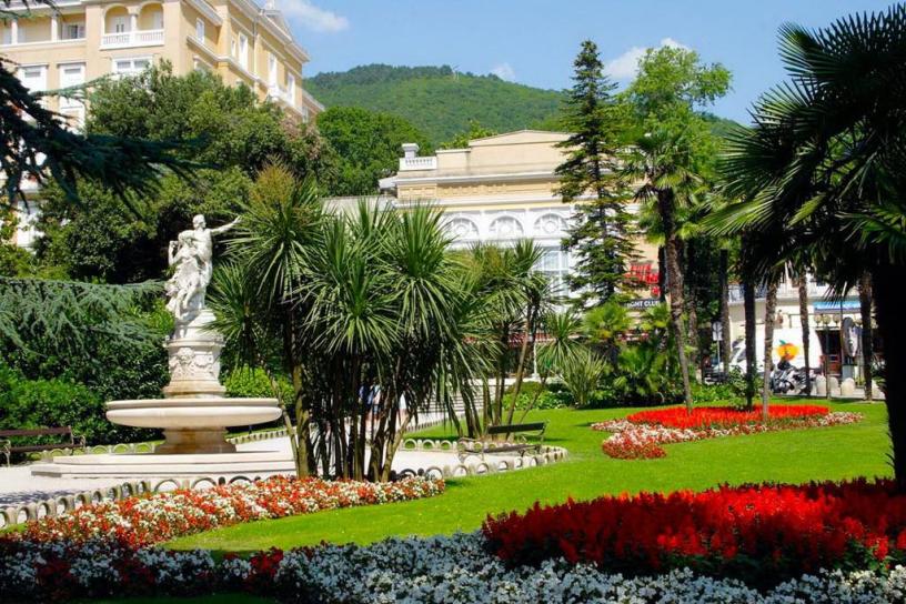 Schubert vinculó el Parque Angiolina con su ambiente mediterráneo, palmeras, camelias y arbustos exóticos al Parque de St. Jacob, un jardín formal y vienés de estilo vienés. Ambos fueron mejorados para complementar las elegantes villas y grandes hoteles de Belle Époque construidos a lo largo de la costa, muchos de los cuales, como el Hotel Kvarner que terminó en 1884, permanecen hoy en día.