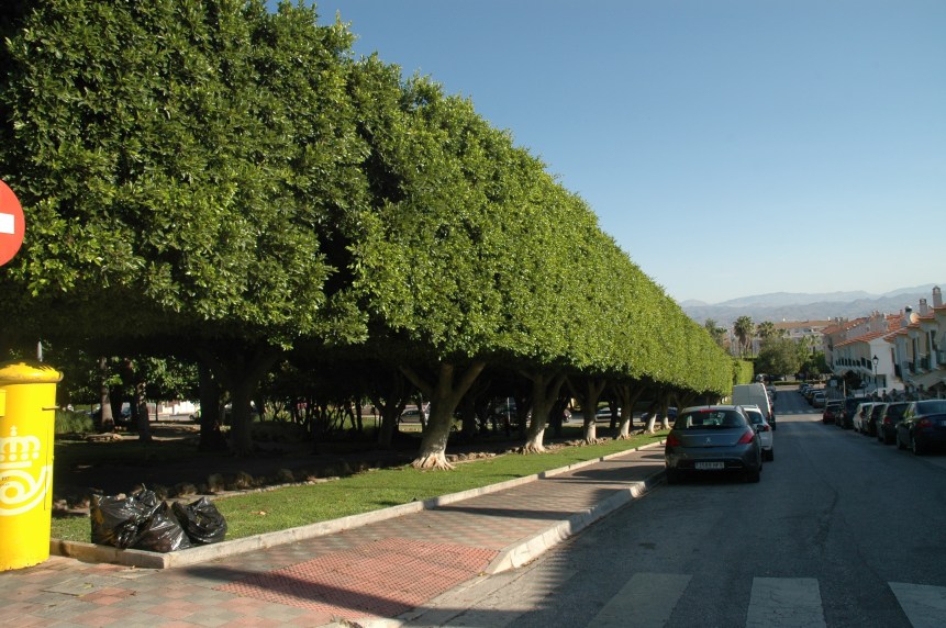 La presencia de estos árboles en la vía publica arquitecturizados obliga en nuestro clima a la poda o recorte tres veces al año para conservar su forma, solo aquellos Ayuntamientos que puedan permitirse este lujo económico pueden hacer sostenible estas topiarias, que llaman la atención en las calles donde se practica.