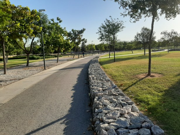 El antiguo camino de Miraflores que atravesaba esta zona se ha convertido en una gran avenida peatonal asfaltada que recorre buena parte de este espacio.