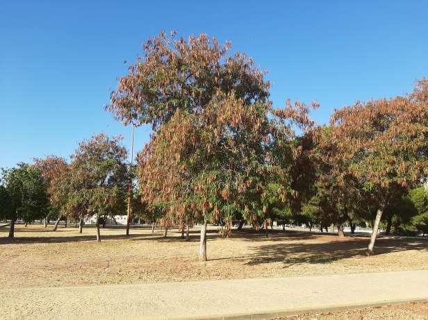 Parque Miraflores Sur..-Catalpa bignonioides abrasada por el sol.