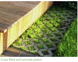 Estas son unidades prefabricadas capaces de soportar carga y se pueden colocar sobre una base compacta o de base con un lecho de arena. Los huecos entre los bloques pueden llenarse con tierra vegetal y semillas de césped o llenarse con grava triturada, arena o vidrio caído. Este sistema es ideal para áreas de estacionamiento de uso ligero, carriles de incendio y zanjas de árboles. Cuando se llena con césped o grava, los bloques de hormigón son visibles, por lo que la apariencia es moteada en lugar de uniforme. Las unidades también se pueden usar para estabilizar terraplenes a lo largo de cursos de agua.