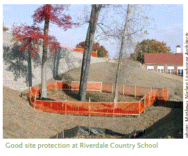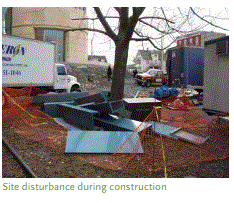 Si bien el contratista debe llevar a cabo estas técnicas de la fase de construcción, el equipo de diseño primero debe exigirlas en los documentos, ya sea diseñados específicamente o con una especificación de rendimiento, y la aplicación por parte del gerente de construcción es crítica. Los sitios urbanos apretados hacen que la protección sea más difícil e, históricamente, la perturbación del sitio ha tenido una prioridad menor que la eficiencia y el costo.