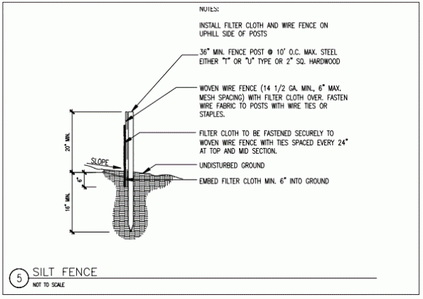 Para controlar la escorrentía de aguas pluviales, se deben instalar cercas de limo alrededor del perímetro del sitio de construcción. Las entradas de las cuencas de captura que reciben flujos de aguas pluviales desde el sitio de construcción deben protegerse con controles de entrada adecuados. Se deben crear cuencas de sedimentos donde haya espacio disponible.
