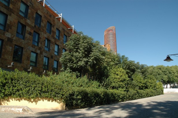 Sistemas de pavimentación y mobiliario del sitio; minimice la perturbación del sitio protegiendo los árboles existentes, organizando la construcción lejos de las futuras áreas plantadas y evitando la contaminación de las áreas existentes del suelo. Construir en un sitio de forma irregular caracterizado por áreas de propiedad «sobrante» y / o patrones de circulación incómodos;; · Las oportunidades para el diseño sostenible incluyen el ahorro y la maximización de áreas de vegetación; introducir bolsas de vegetación y árboles; emplear diversas técnicas de gestión de aguas pluviales; y uso de materiales que contengan contenido reciclado. Las oportunidades deben evaluarse cuidadosamente en función de la forma del lugar y la cantidad de tierra sin desarrollar después de definir el programa de construcción y sitio. La ubicación del edificio en el sitio es clave.