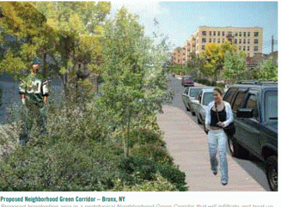 La implementación de las Directrices ayudará a la ciudad a cumplir de manera rentable con las reglamentaciones locales, estatales y autonómicas para la calidad del aire y el agua. Aumento de los valores de las propiedades y el desarrollo económico Las mejoras en el paisaje urbano tienen el potencial de revitalizar los barrios y aumentar los valores de las propiedades, particularmente en áreas que actualmente sufren de tizón urbano o desuso, ya que ayudan a mejorar la estética de la comunidad, mejorar la salud ambiental, reducir las tasas de criminalidad, aumentar los comerciales y actividad peatonal, y aumentar la inversión empresarial.