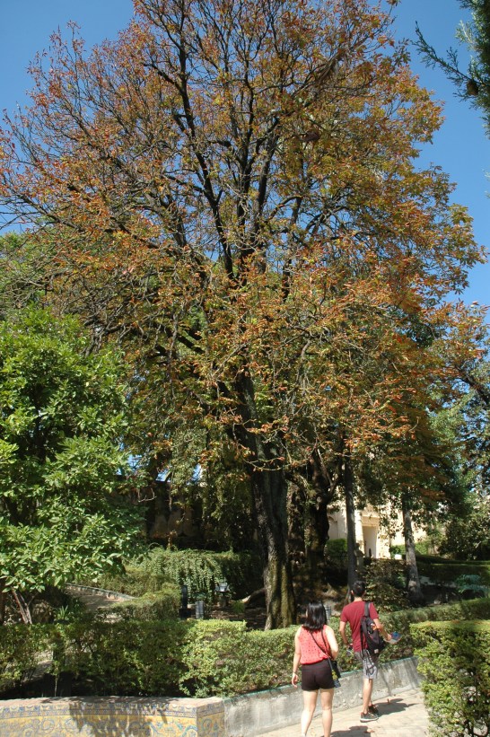 En los Jardines del Marques de Vega Inclán en los Reales Alcázares existe el mayor ejemplar junto al .En la Cartuja Santa Maria de las Cuevas podemos encontrar otro ejemplar aislado