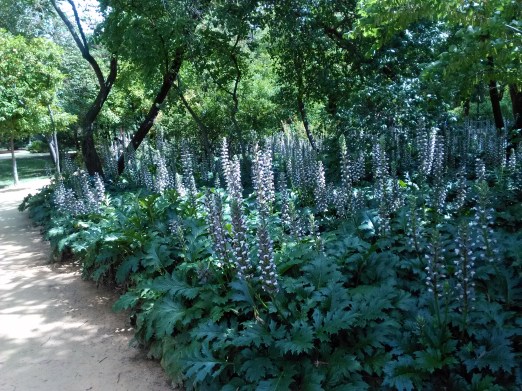Comúnmente llamado acanto, esta planta se cultiva por su follaje brillante de hojas grandes que puede ser irregular o espinoso, con espigas altas flores geométricas con pétalos blancos y brácteas espinosas de color púrpura a finales de primavera hasta principios de verano. Dato curioso: el motivo de la hoja de acanto se incorporó en el diseño de las coronas en las columnas corintias; Este detalle arquitectónico todavía se puede ver adornando pilares hoy en día.
