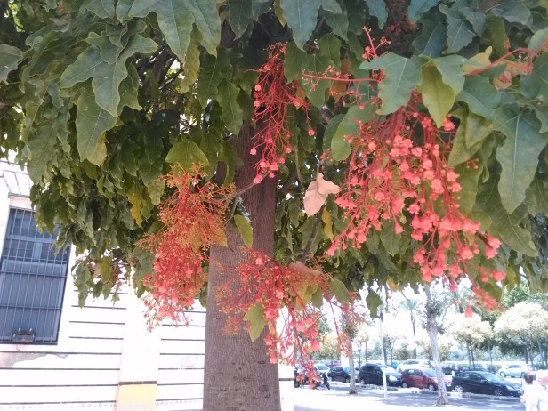 Brachychiton en sus variedades con flores rojas, rosas y amarillas