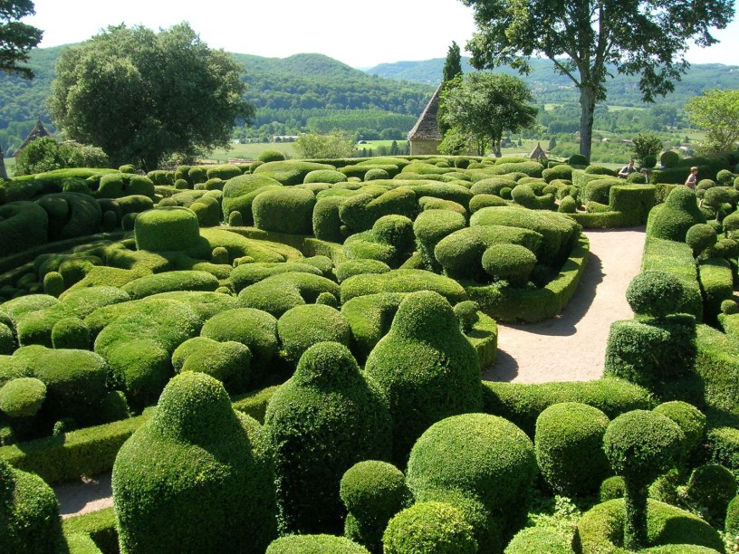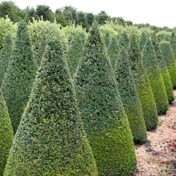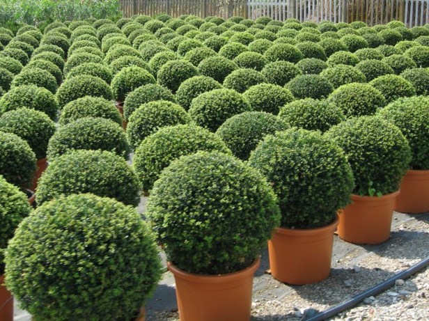El boj se puede cultivar con éxito en contenedores, y a menudo se recorta en formas de topiario formal.