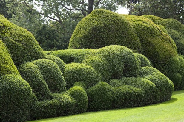 Los setos también se pueden podar en grandes formas de nubes; esto hace un cambio agradable desde los bordes rectos