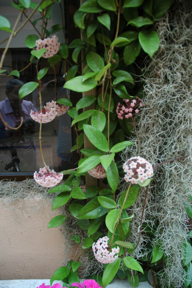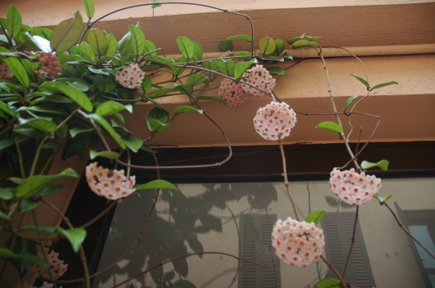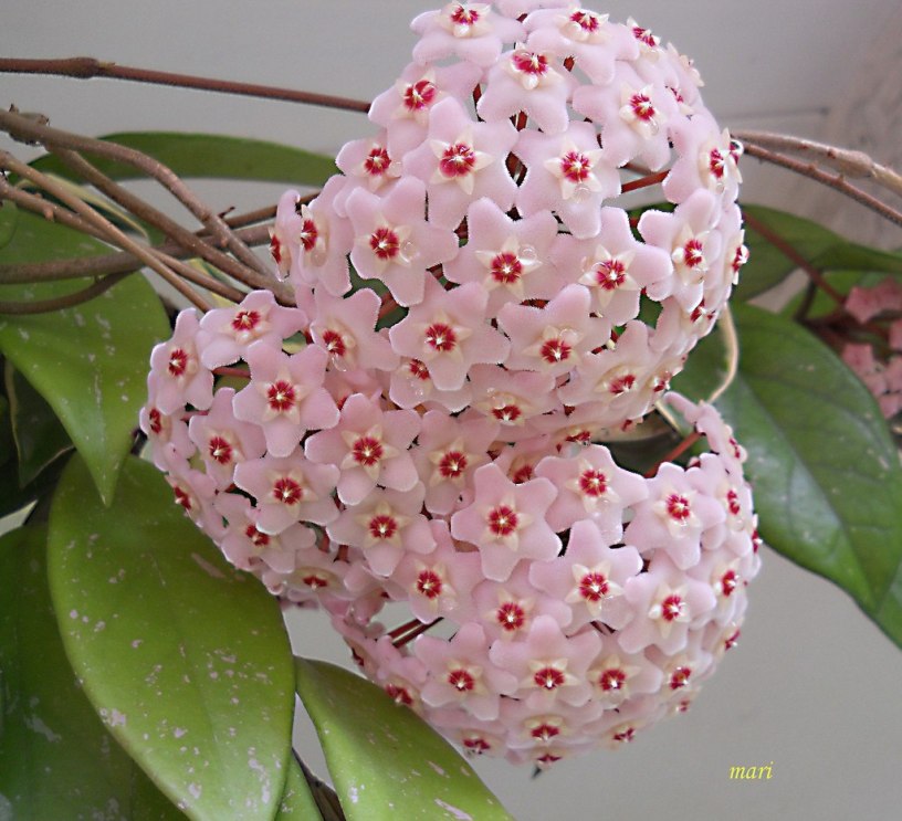 Hoya es un a planta trepadora de hoja perenne adecuada para interiores soleados, con cabezas ligeramente colgantes de flores cerosas que pueden ser muy perfumadas, especialmente en la noche.