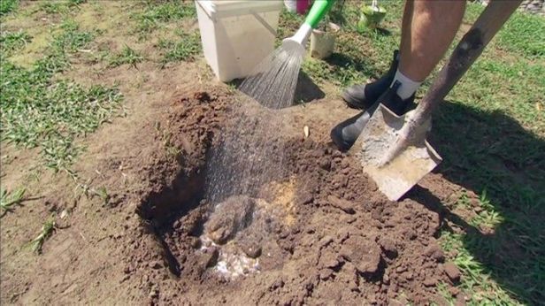 Al plantar en suelos arcillosos, el fondo del hoyo de plantación debe romperse antes de plantar y los lados del hoyo se deben romper con un palin de jardín. Si no se afloja, se puede formar un sumidero en el agua que se puede acumular, lo que puede provocar la muerte de la planta debido al anegamiento.