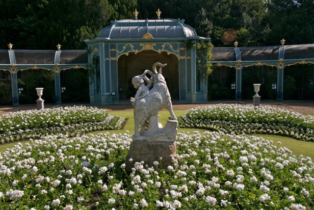 ¿Qué es un parterre? Un jardín formal de inspiración francesa, un parterre está formado por un patrón simétrico de plantas levantadas por hierba cortada y contenidas por senderos limpios y setos bajos recortados. Generalmente diseñado para ser visto desde arriba, en nuestro caso desde la terraza elevada y las principales salas de recepción y dormitorios en el lado sur de la mansión. En el centro se encuentra una magnífica fuente, originalmente hecha para un palacio italiano en Colorno. El parterre fue restaurado en 1994 a diseños de Beth Rothschild. En 2000, Waddesdon ganó el premio Europa Nostra por «la extraordinaria recreación con técnicas modernas de un gran jardín victoriano».